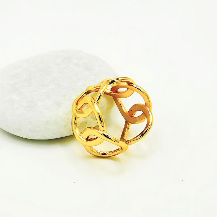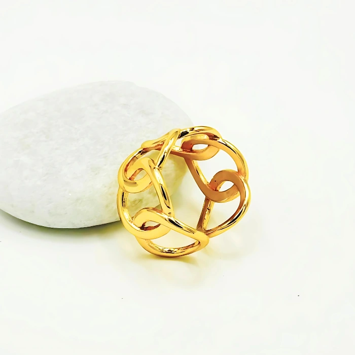 Add a modern touch to your everyday look with this gold-plated open ring. The linked circle design is smooth and shiny, combining elegance with a bold style. It’s lightweight, comfortable, and made from skin-friendly materials, perfect for daily wear. Dress it up or keep it casual—this ring adds charm to any outfit.