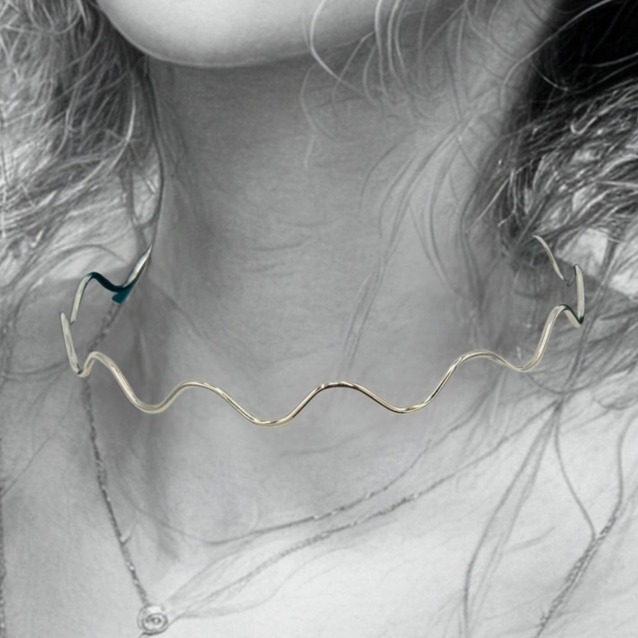 Sleek and sculptural, this silver wave choker brings effortless edge to your jewelry game. With its fluid, wavy silhouette and polished finish, it hugs the neck in all the right ways. Crafted from high-quality, demi-fine materials, it’s lightweight, statement-worthy, and endlessly versatile.