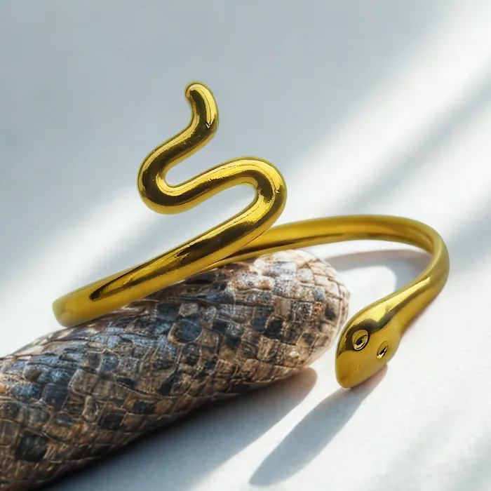 Fancy Tailed Snake Bracelet - Demifine Jewellery | 18k thick Gold Plated | Shop Now - Sheura