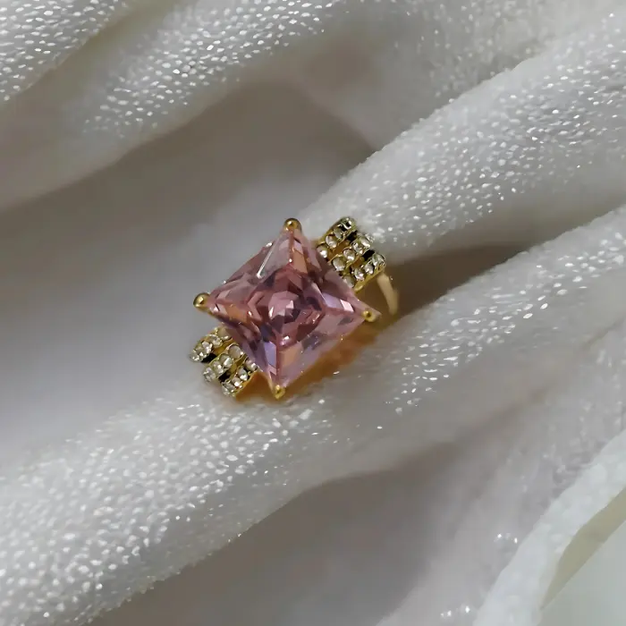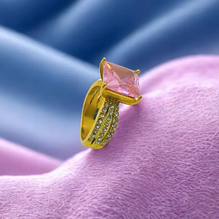 Add a pop of color and sparkle to your look with our Sheura Event Ready Pink Solitaire Ring. Made with gold-plated stainless steel, it features a large pink crystal in the center and tiny stones on the band for extra shine. This pretty and stylish ring is perfect for special occasions or when you just want to feel a little fancy.